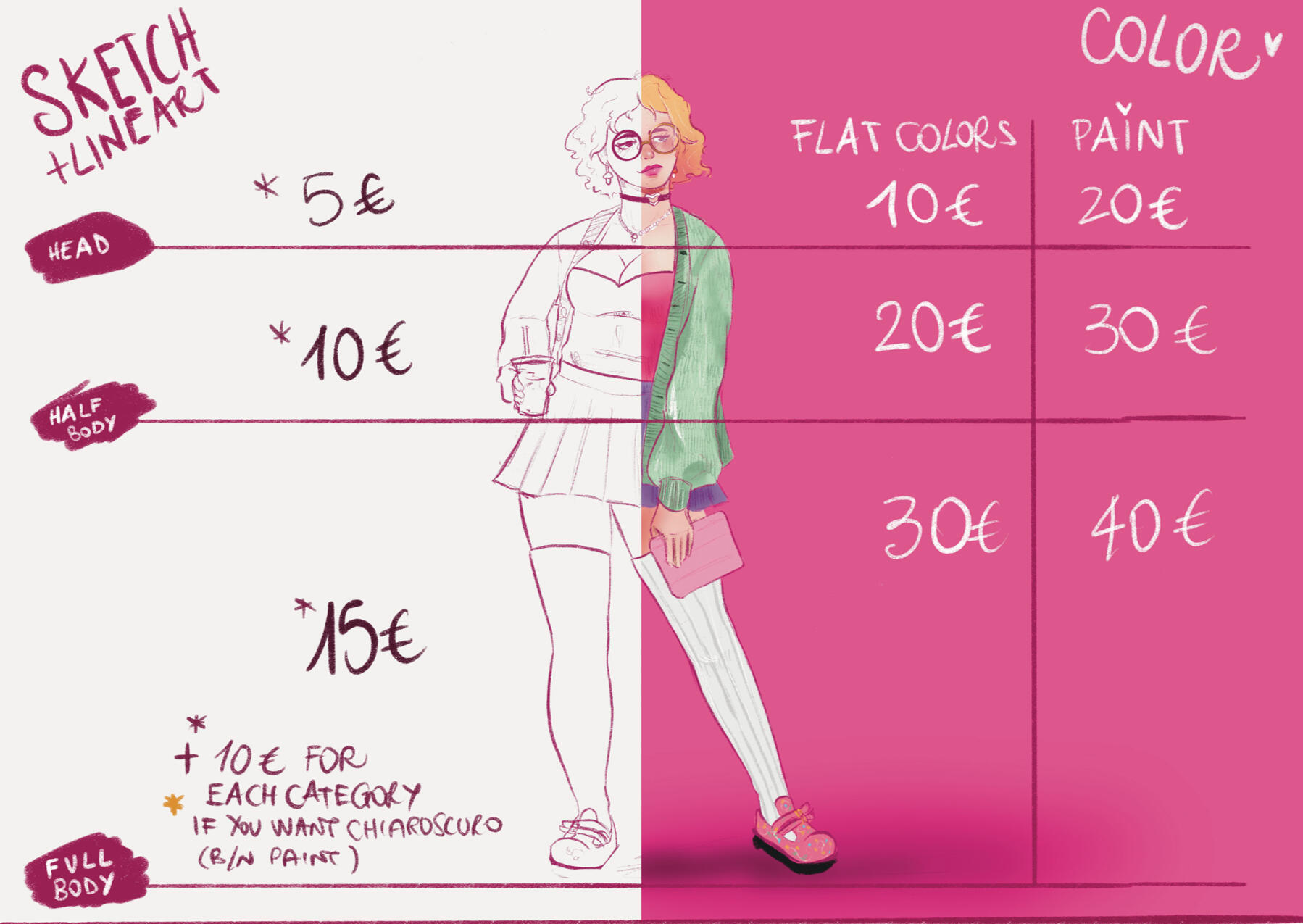 the payment is divided into: half after approving the draft and half when the final version is shown. The work will be delivered immediately after payment.PAYPAL - KOFI